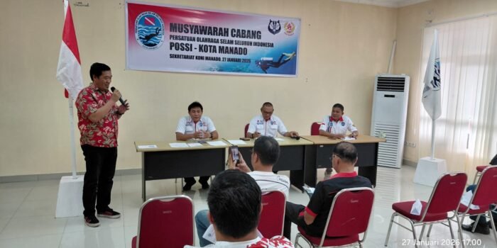 Manado, VoxSulut.Co.id – Musyawarah Cabang Persatuan Olahraga Selam Seluruh Indonesia (POSSI) Kota Manado Selasa (27/1) sore digelar di Sekretariat KONI Manado, dipimpin Novy