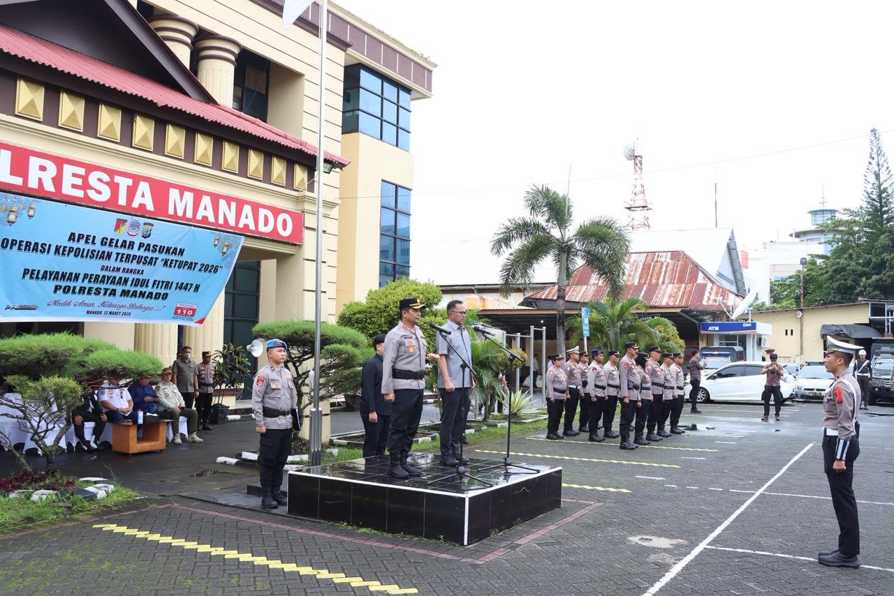“Apel Gelar Pasukan ini merupakan bentuk pengecekan akhir kesiapan pelaksanaan Operasi Ketupat 2026, baik dari sisi personel, sarana prasarana maupun sinergitas dengan seluruh stakeholder terkait, sehingga masyarakat dapat merayakan Idul Fitri dengan aman dan nyaman,” ujar Kapolresta Manado Kombes Pol Irham Hali.