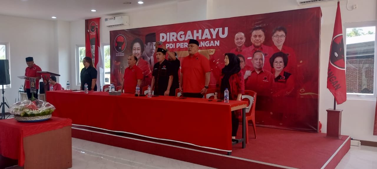 Ketua DPC PDIP Manado, dr. Richard Sualang, yang saat ini menghadiri peringatan HUT ke-53 di Jakarta, menyampaikan sambutan lewat Wakabid Kehormatan Partai, Markho Bryner Tampi, S.I.K.