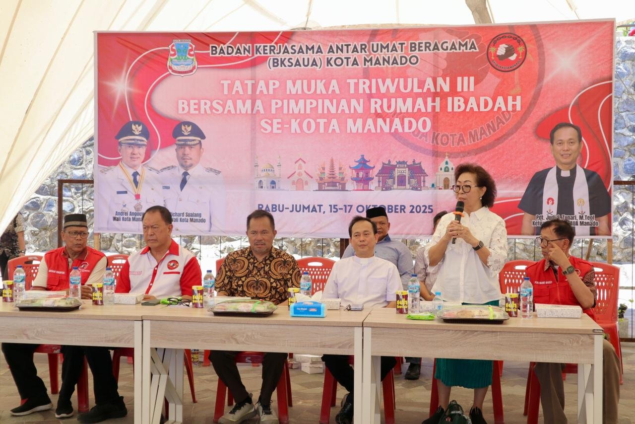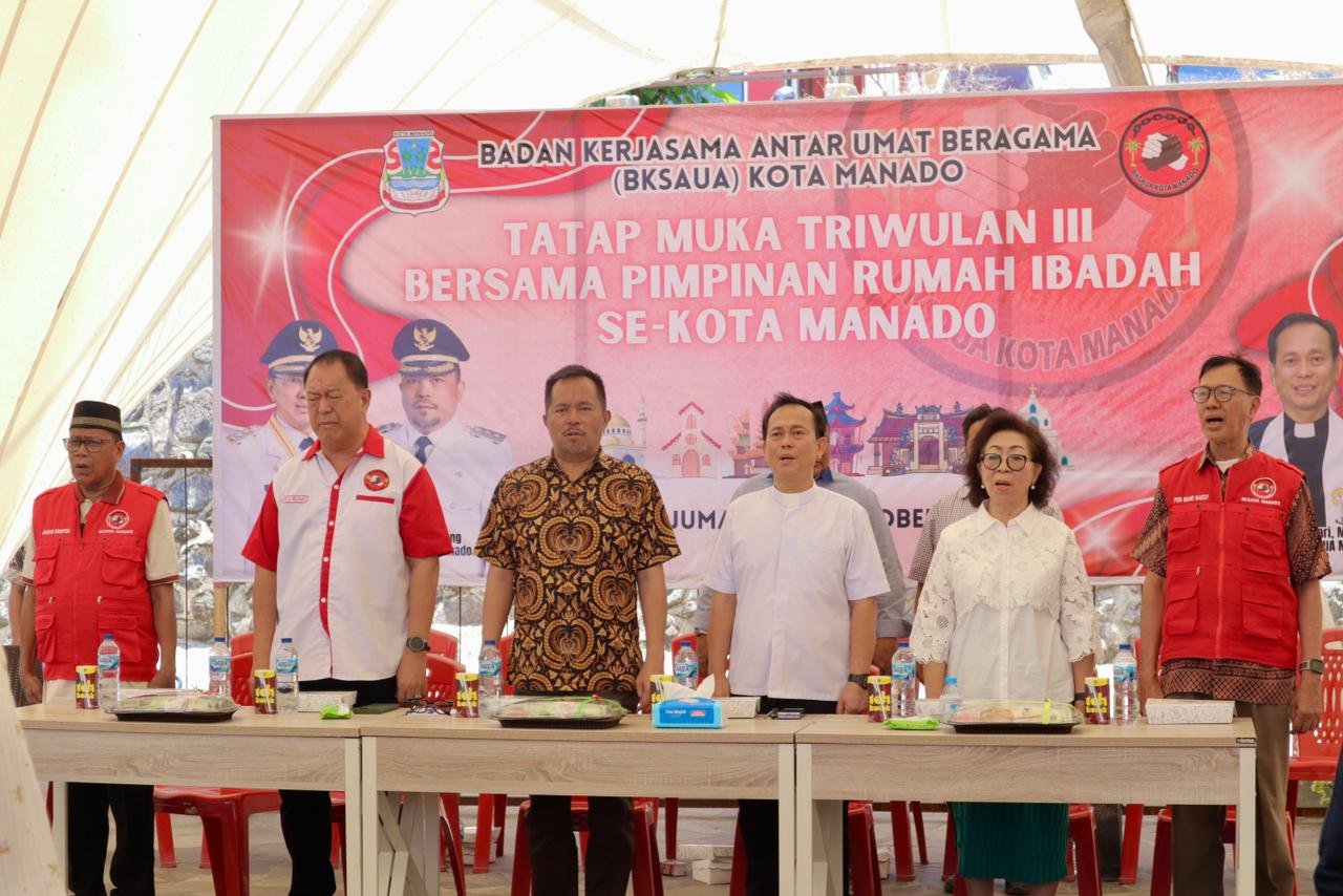 Forum ini turut dihadiri oleh Ketua BKSAUA Kota Manado Pdt. Yudi Tunari, M.Teol, bersama Kepala Bagian Kesra Setda Kota Manado Janny Ohi, SE, jajaran Pemerintah Kota, serta para pimpinan rumah ibadah dari berbagai denominasi dan agama di Kota Manado.